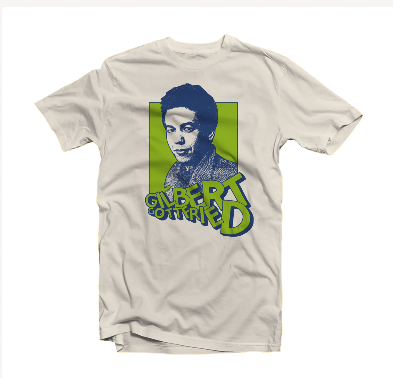 Gilbert Gottfried Green Retro T-shirt. Artwork by Perry Shall.